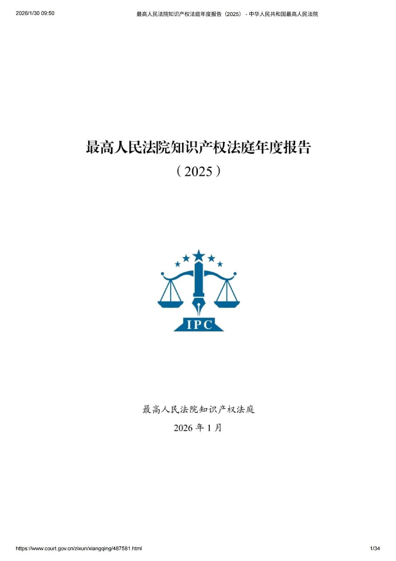 近日,最高人民法院知识产权法庭正式发布2025年工作年度报告。作为中国技术类知识产权上诉审理机制运行七周年的总结,《报告》全面梳理了过去一年中国在激励科技创新、维护公平竞争及服务高水平对外开放方面的司法实践与规则演进。